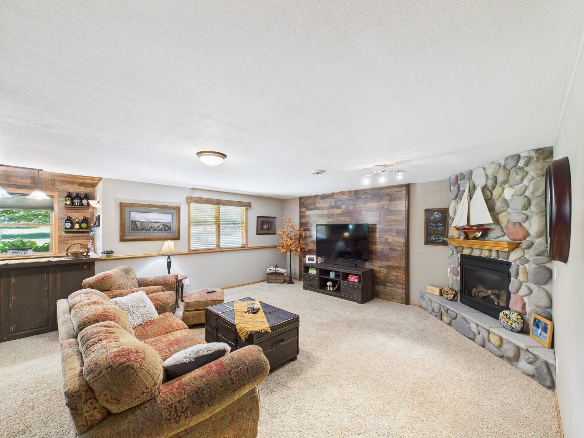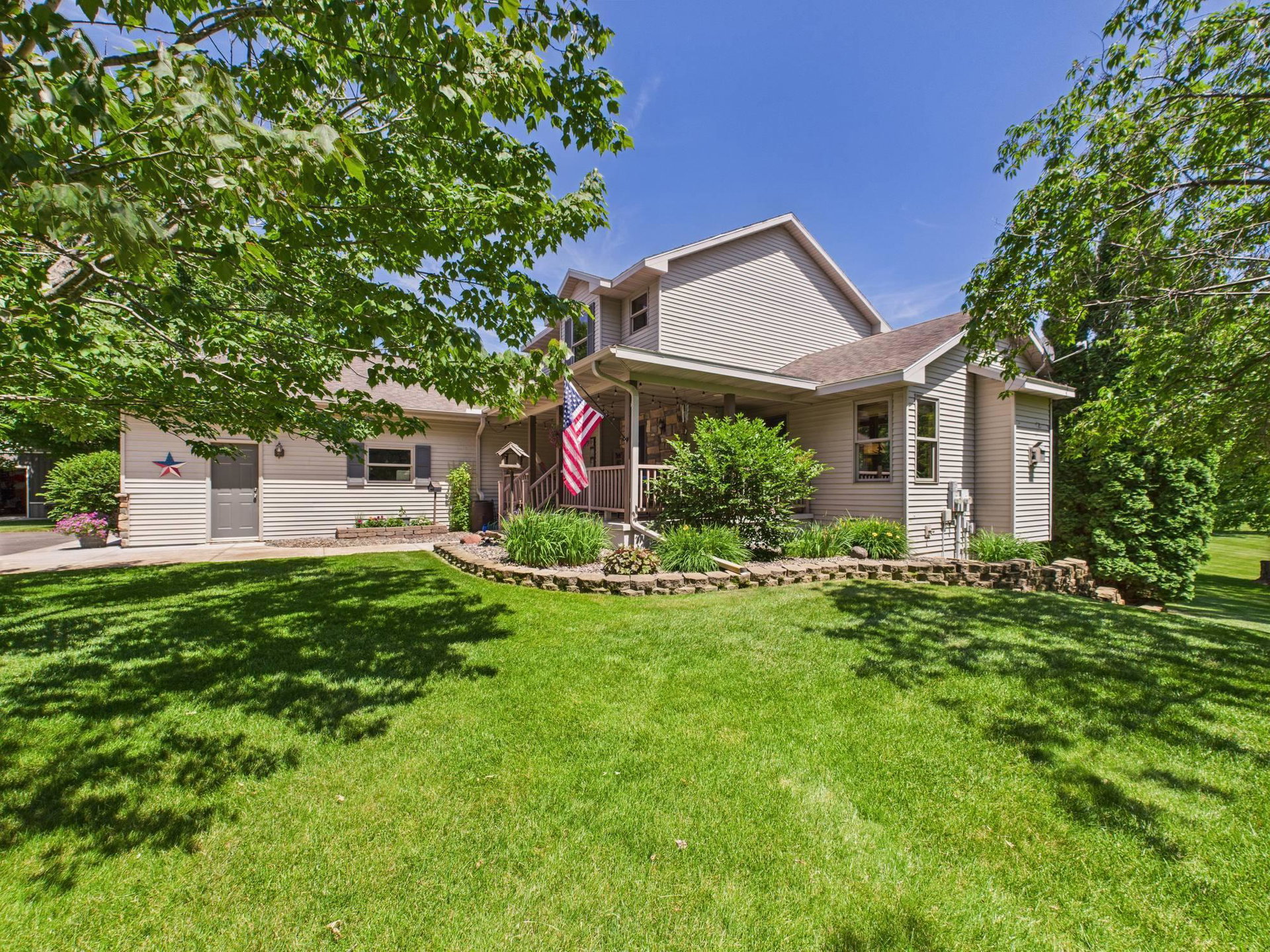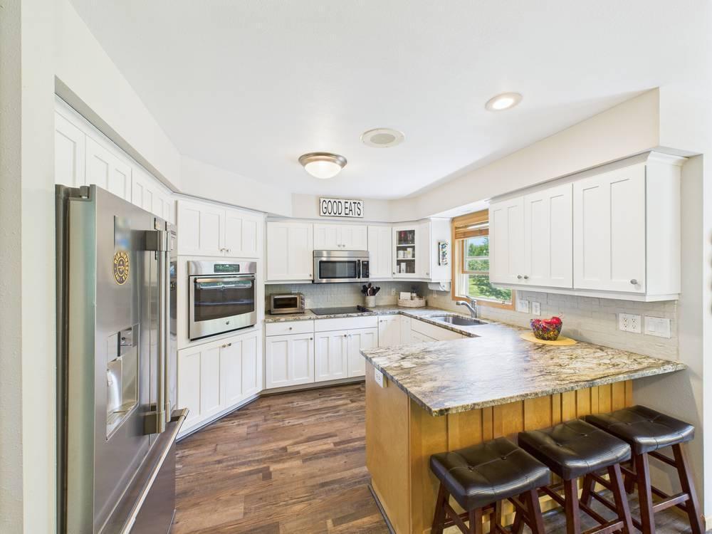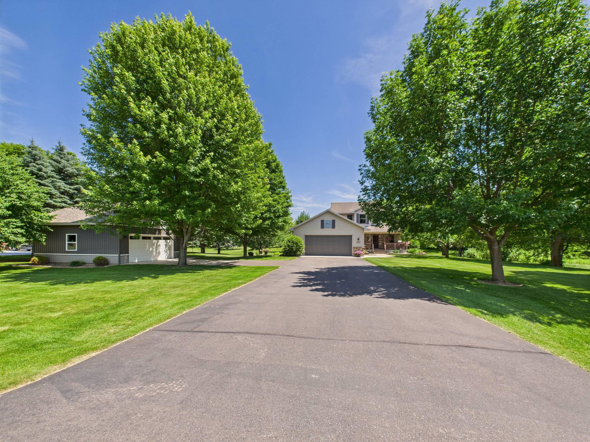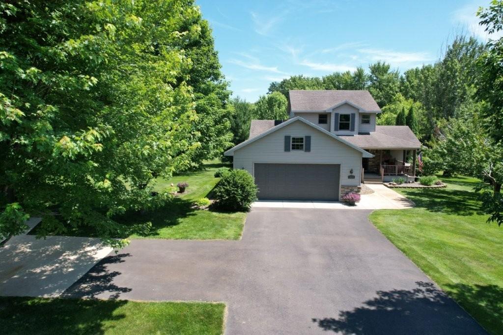 Absolutely stunning home loaded with amenities on a 3+ acre wooded lot across from popular golf course. You have to tour to appreciate how meticulously maintained this one owner home is and walk the secluded backyard to enjoy the nature and privacy. Home features one level living, granite countertops, vaulted ceilings, panel doors, trendy white cabinets and finishes throughout, gas fireplace, private master suite with WIC and private bath. Upper-level features two additional bedrooms to use as an office or for guests and a bathroom with tiled shower. Impressive lower level boasts a family room with stone gas fireplace, bar, workout area, bedroom, bathroom and large storage room. Endless room for all your vehicles and toys in the attached finished garage and detached finished and heated garage. These garages can accommodate all your hobbies and ideal for entertaining. Relax on the front covered porch, back maintenance free deck or around the firepit. Beautifully maintained landscaping and grass with sprinkler system and storage shed. Enjoy the convenience of being next to Spring Brook Golf Course in this desirable neighborhood. This is a must see property in exceptional condition.