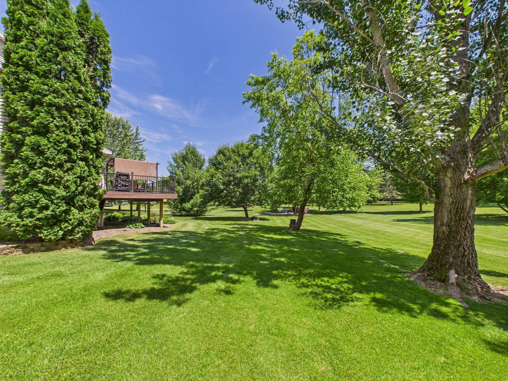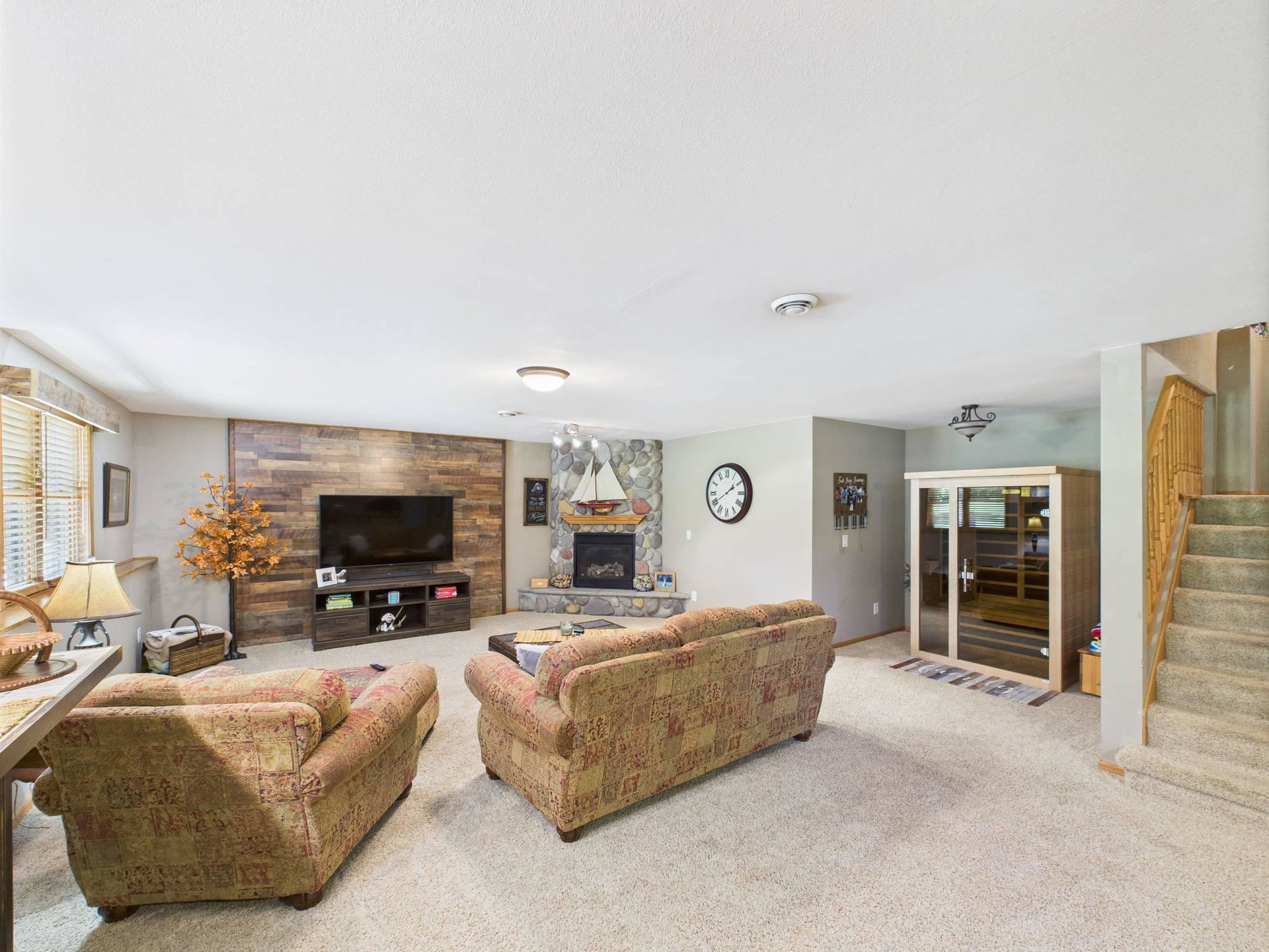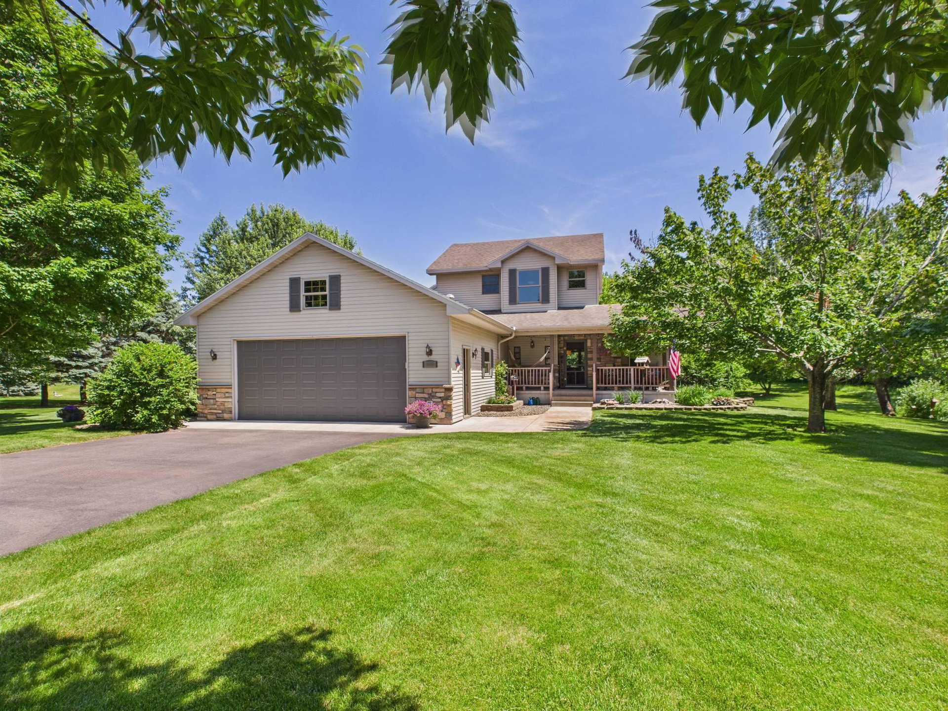 Absolutely stunning home loaded with amenities on a 3+ acre wooded lot across from popular golf course. You have to tour to appreciate how meticulously maintained this one owner home is and walk the secluded backyard to enjoy the nature and privacy. Home features one level living, granite countertops, vaulted ceilings, panel doors, trendy white cabinets and finishes throughout, gas fireplace, private master suite with WIC and private bath. Upper-level features two additional bedrooms to use as an office or for guests and a bathroom with tiled shower. Impressive lower level boasts a family room with stone gas fireplace, bar, workout area, bedroom, bathroom and large storage room. Endless room for all your vehicles and toys in the attached finished garage and detached finished and heated garage. These garages can accommodate all your hobbies and ideal for entertaining. Relax on the front covered porch, back maintenance free deck or around the firepit. Beautifully maintained landscaping and grass with sprinkler system and storage shed. Enjoy the convenience of being next to Spring Brook Golf Course in this desirable neighborhood. This is a must see property in exceptional condition.