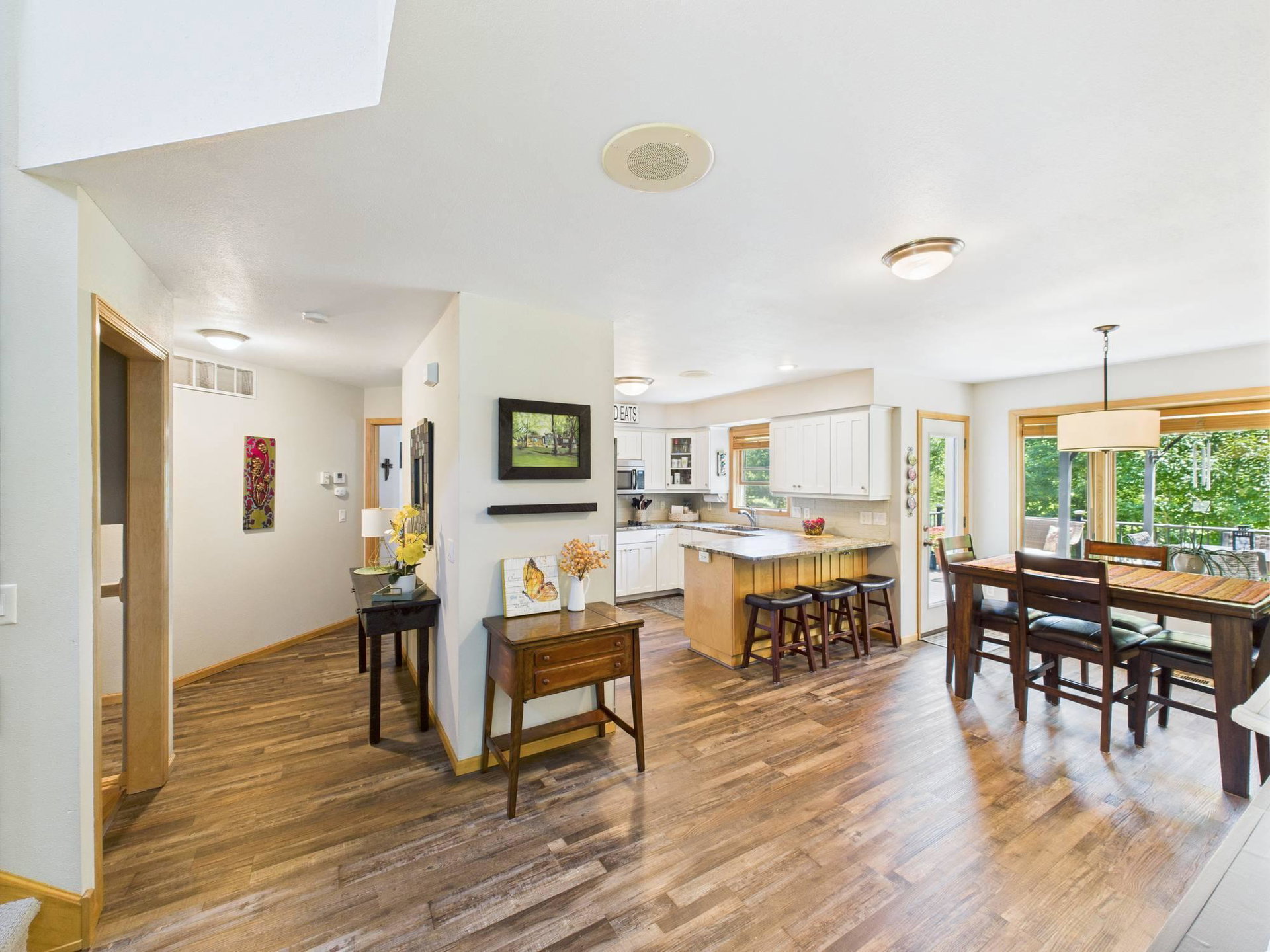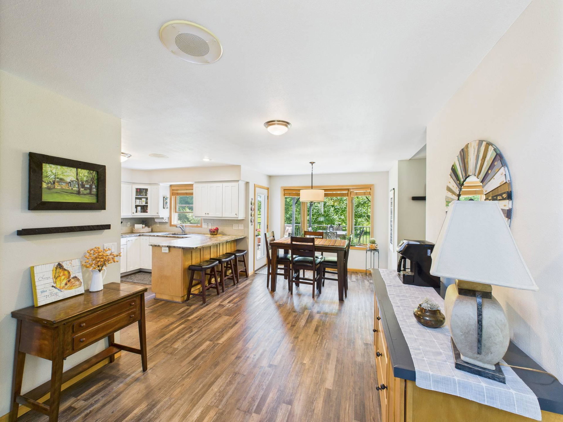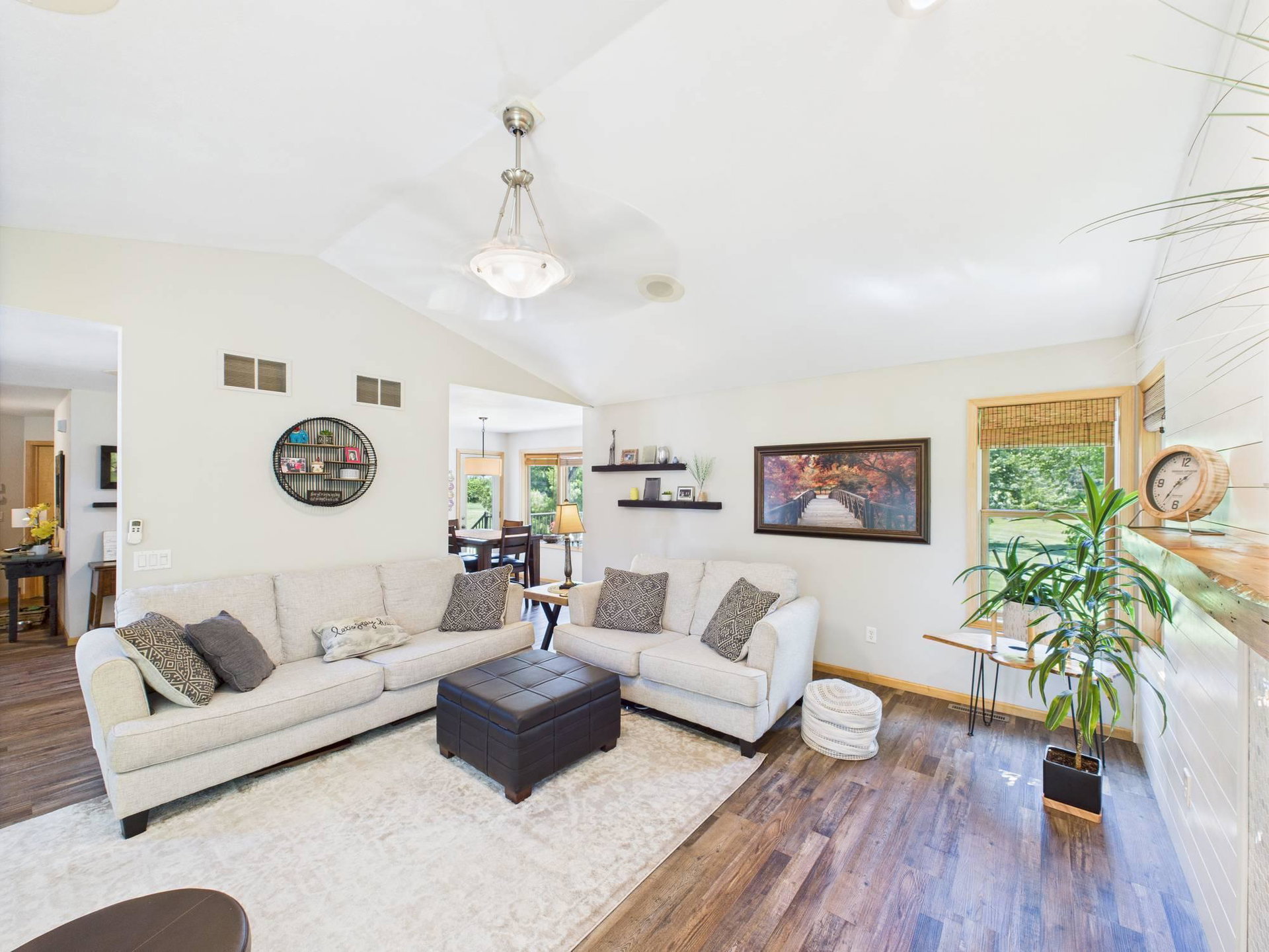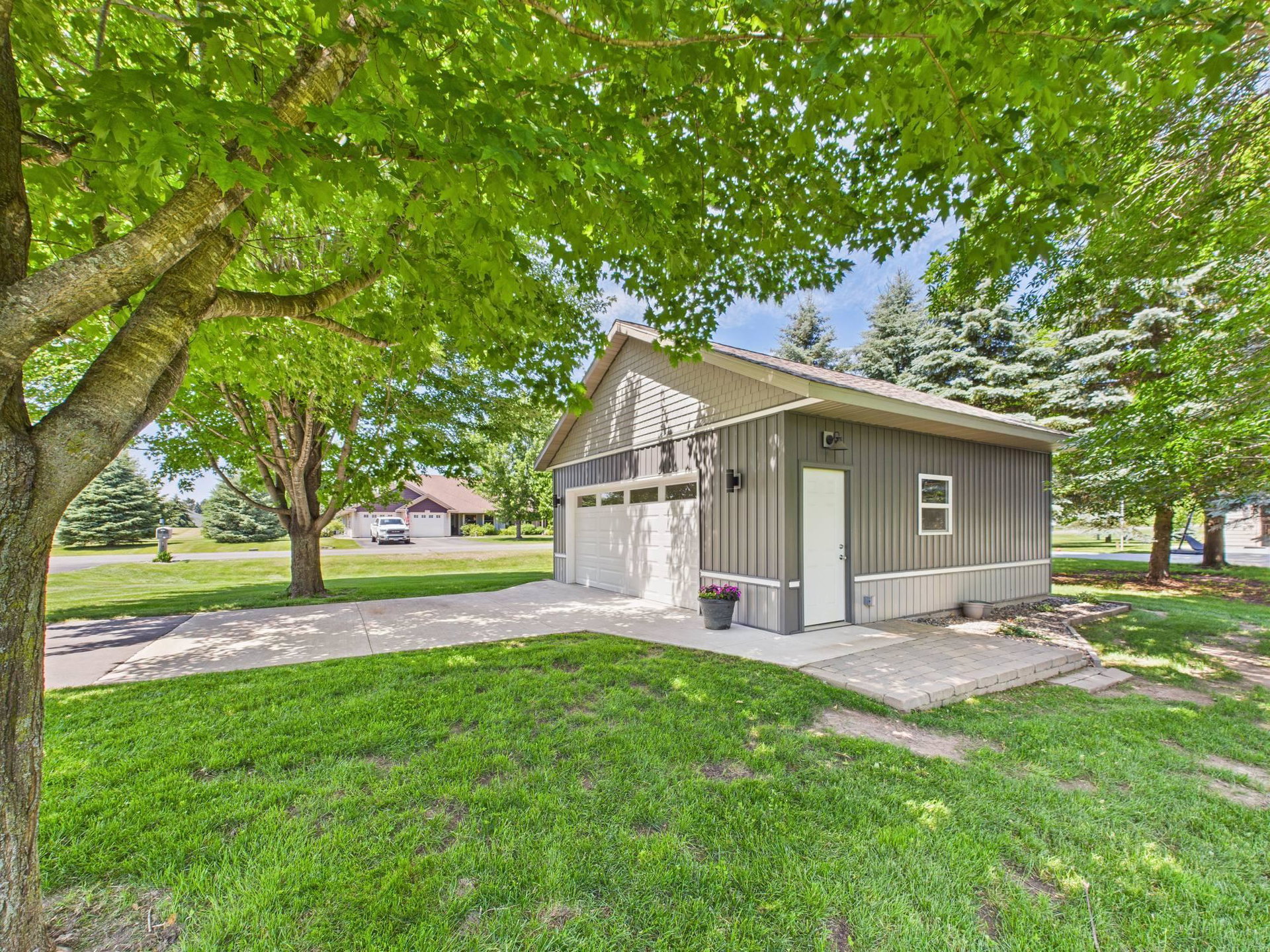 Absolutely stunning home loaded with amenities on a 3+ acre wooded lot across from popular golf course. You have to tour to appreciate how meticulously maintained this one owner home is and walk the secluded backyard to enjoy the nature and privacy. Home features one level living, granite countertops, vaulted ceilings, panel doors, trendy white cabinets and finishes throughout, gas fireplace, private master suite with WIC and private bath. Upper-level features two additional bedrooms to use as an office or for guests and a bathroom with tiled shower. Impressive lower level boasts a family room with stone gas fireplace, bar, workout area, bedroom, bathroom and large storage room. Endless room for all your vehicles and toys in the attached finished garage and detached finished and heated garage. These garages can accommodate all your hobbies and ideal for entertaining. Relax on the front covered porch, back maintenance free deck or around the firepit. Beautifully maintained landscaping and grass with sprinkler system and storage shed. Enjoy the convenience of being next to Spring Brook Golf Course in this desirable neighborhood. This is a must see property in exceptional condition.