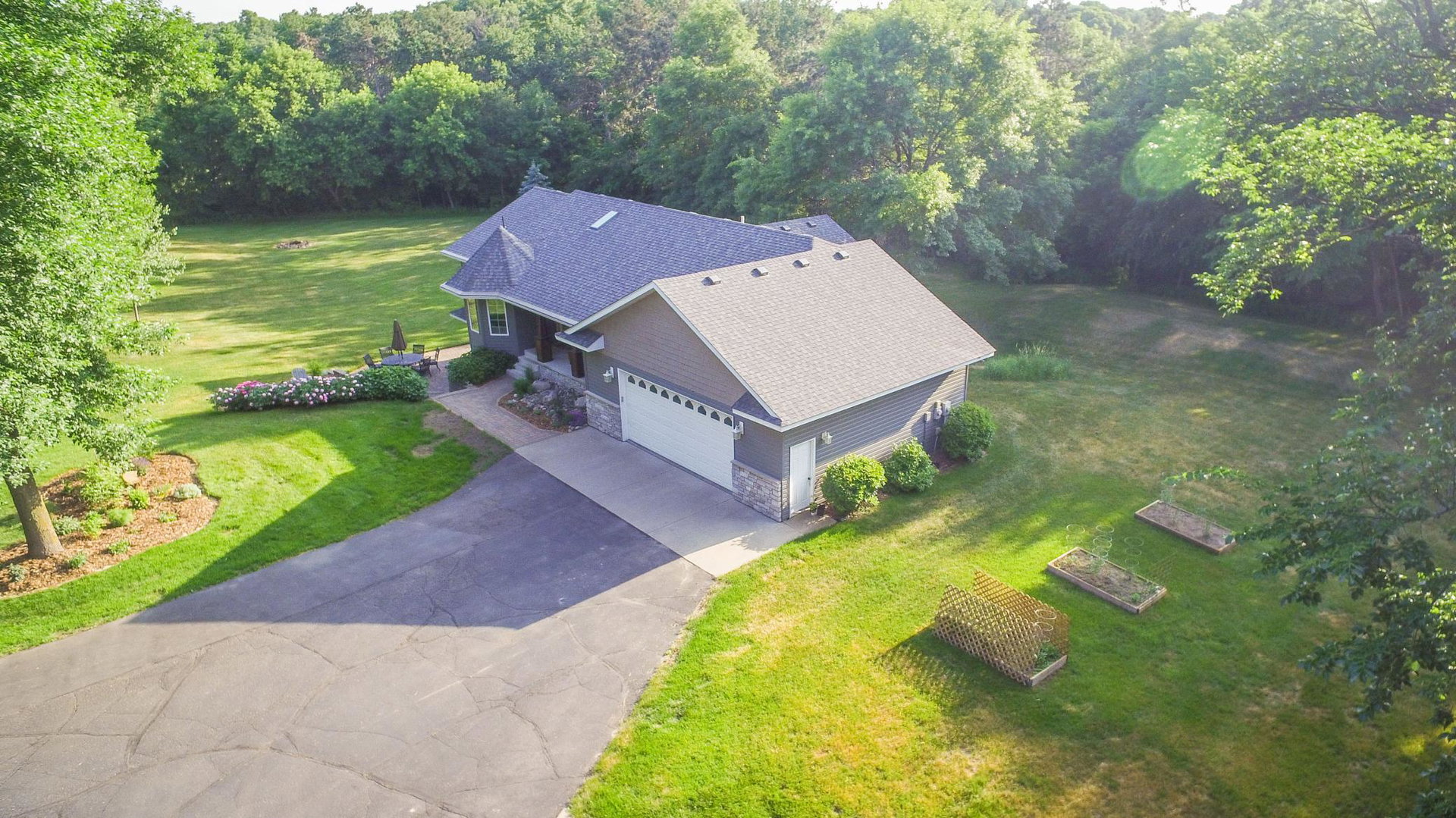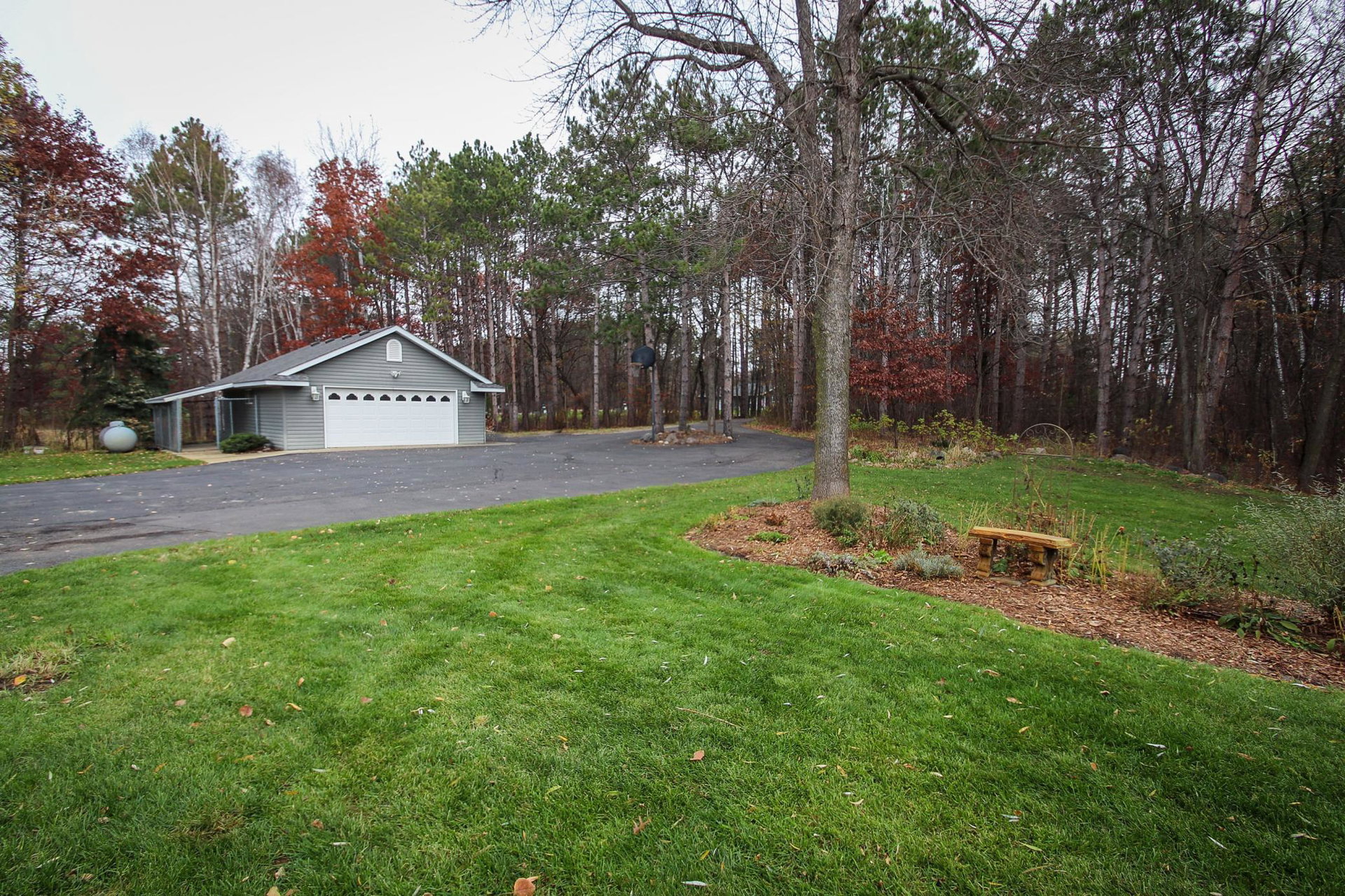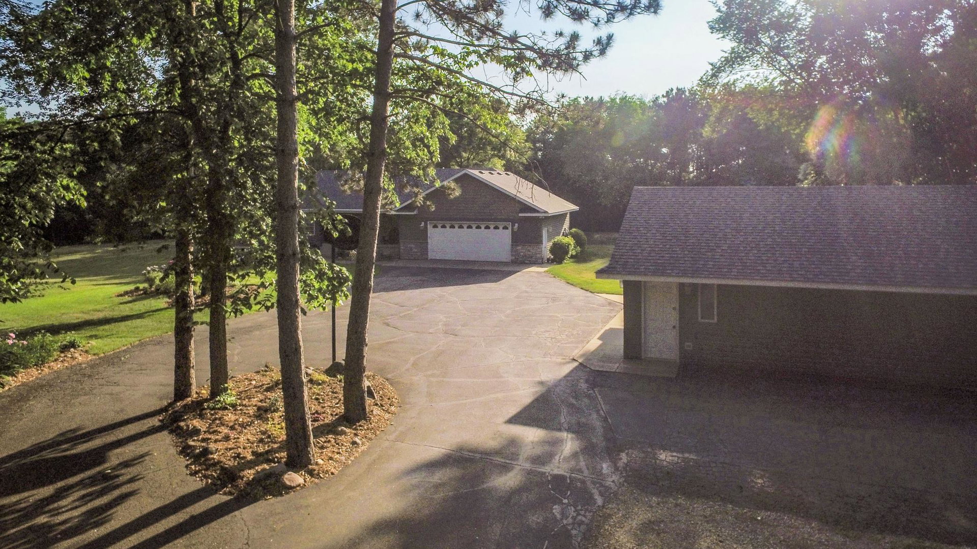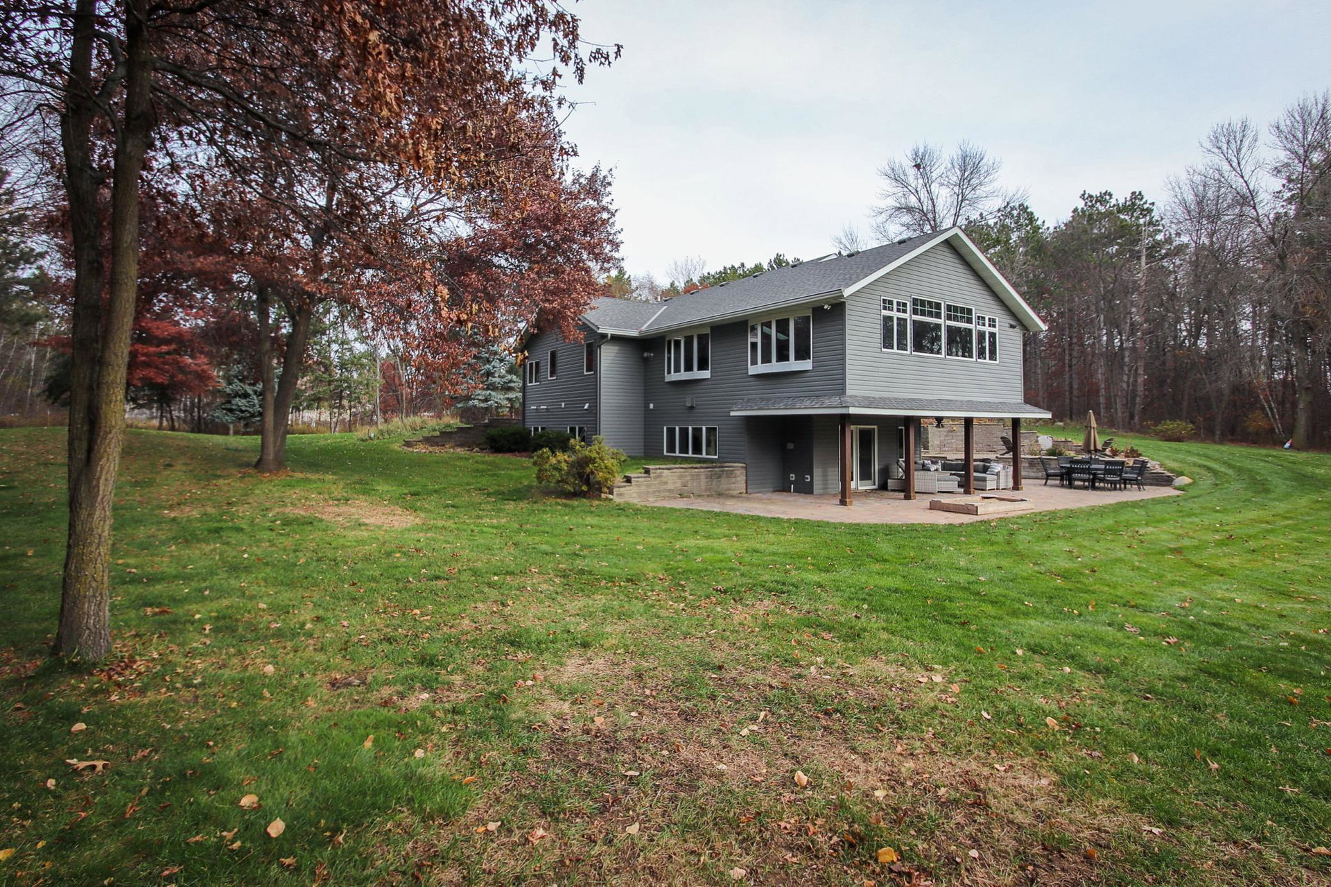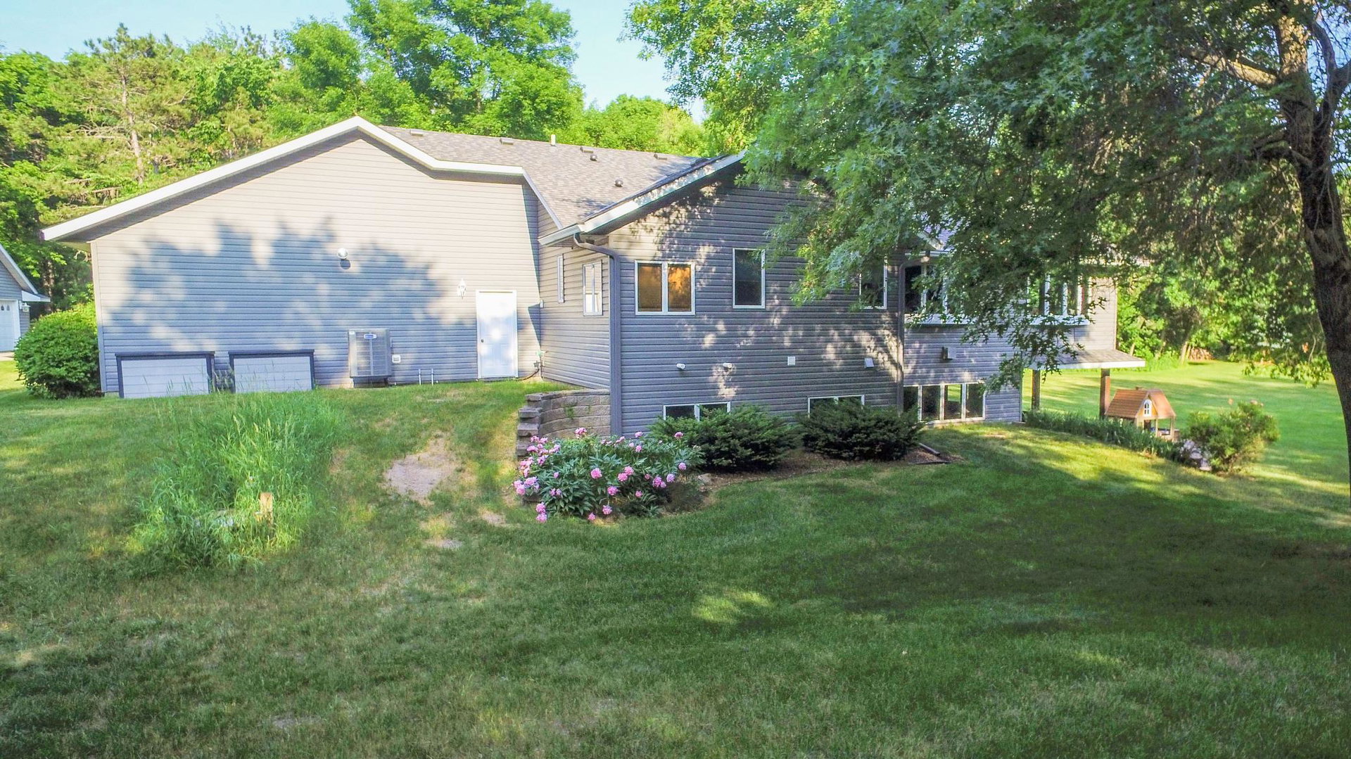 Absolutely stunning property on a 3.7 acre secluded lot, surrounded by woods, rolling hills & abundance of wildlife. The home has countless recent updates featuring a beautiful dream kitchen, stainless steel appliances, granite counter tops, tiled floors, center island, breakfast bar, vaulted ceilings, panel doors, see through glass fireplace, built-in entry lockers and huge windows throughout showcasing the amazing exterior views. Main level primary bedroom with private bath and laundry accommodates one level living. The lower level is a walkout onto impressive wrap around patio with firepit, extensive landscaping and perfect for entertaining. Endless room for storage and hobbies in the attached and detached finished and heated garages/shop. Newer shingles, furnace, AC, heat pump, steel siding, flooring, fixtures, paint and more you have to see to appreciate the enjoyment the peacefulness this home offers!
