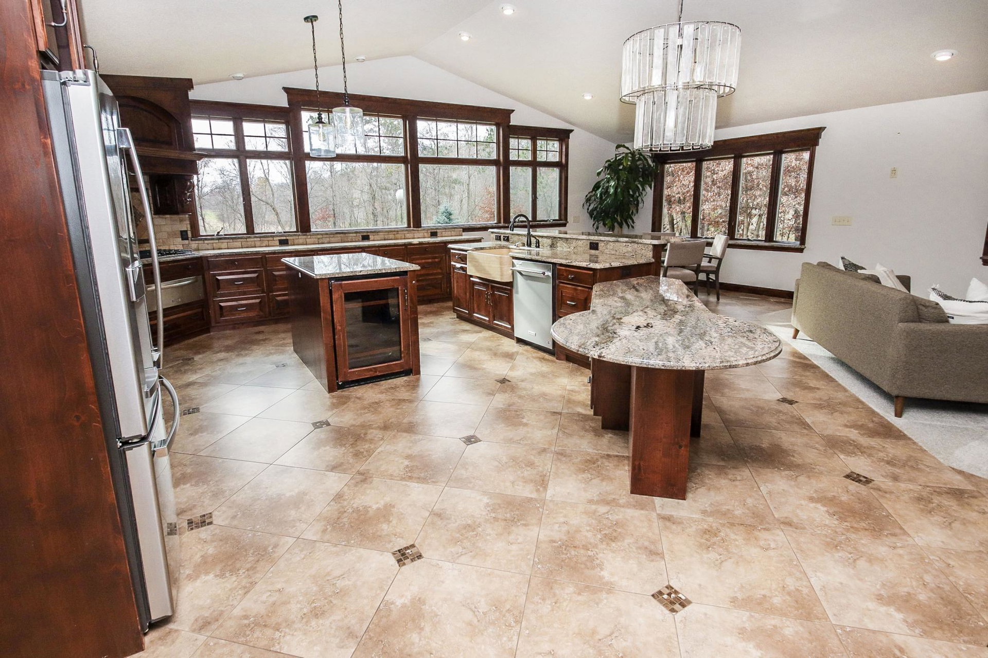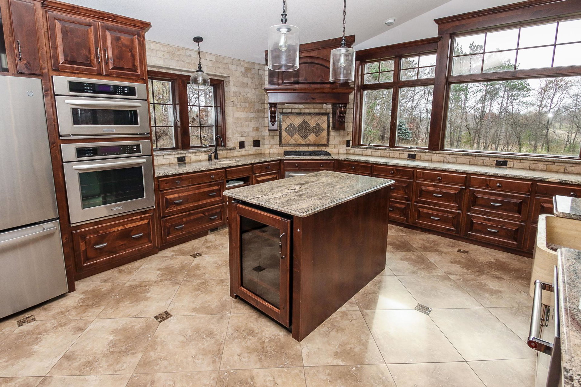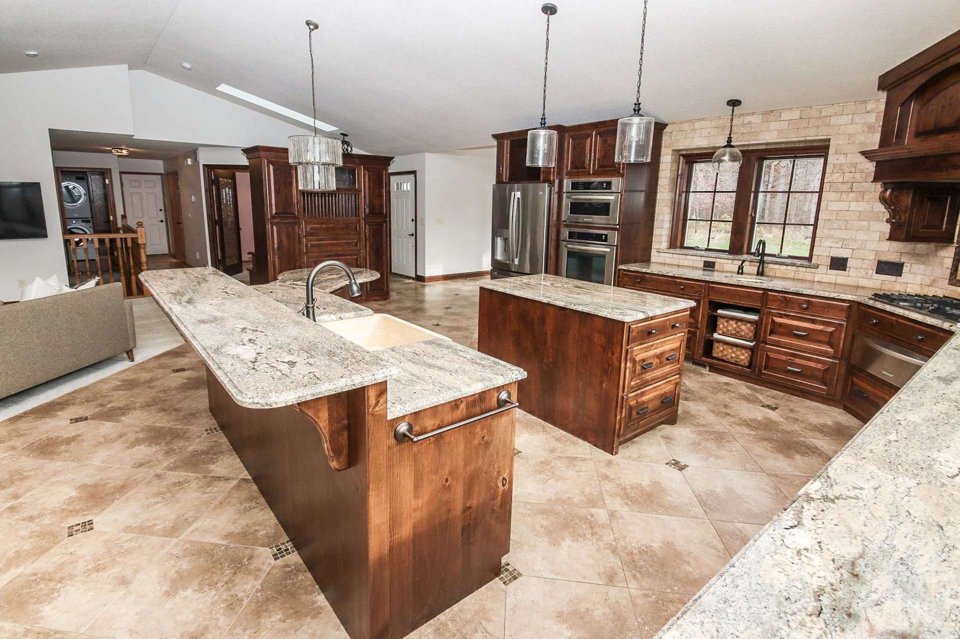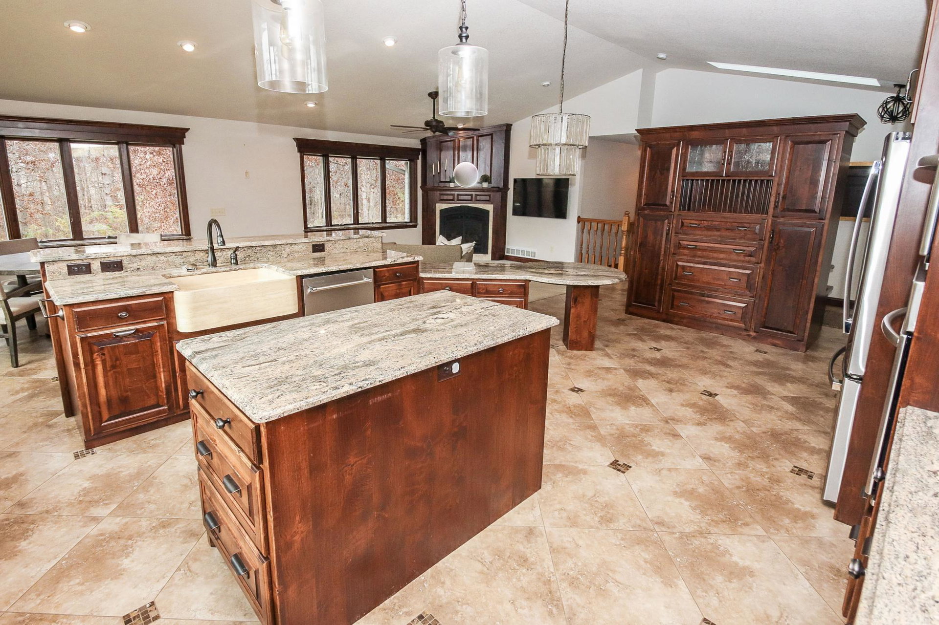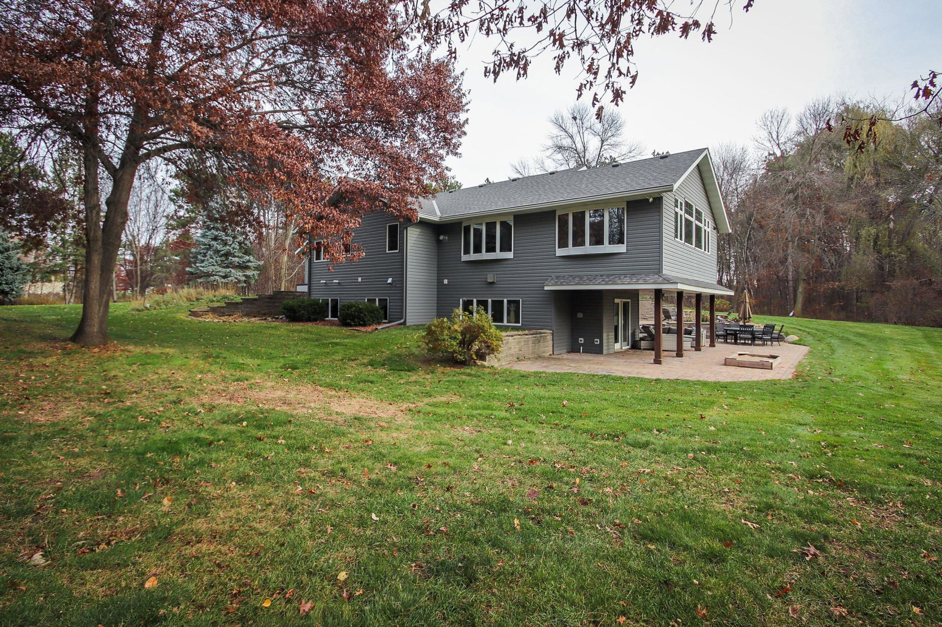 Absolutely stunning property on a 3.7 acre secluded lot, surrounded by woods, rolling hills & abundance of wildlife. The home has countless recent updates featuring a beautiful dream kitchen, stainless steel appliances, granite counter tops, tiled floors, center island, breakfast bar, vaulted ceilings, panel doors, see through glass fireplace, built-in entry lockers and huge windows throughout showcasing the amazing exterior views. Main level primary bedroom with private bath and laundry accommodates one level living. The lower level is a walkout onto impressive wrap around patio with firepit, extensive landscaping and perfect for entertaining. Endless room for storage and hobbies in the attached and detached finished and heated garages/shop. Newer shingles, furnace, AC, heat pump, steel siding, flooring, fixtures, paint and more you have to see to appreciate the enjoyment the peacefulness this home offers!
